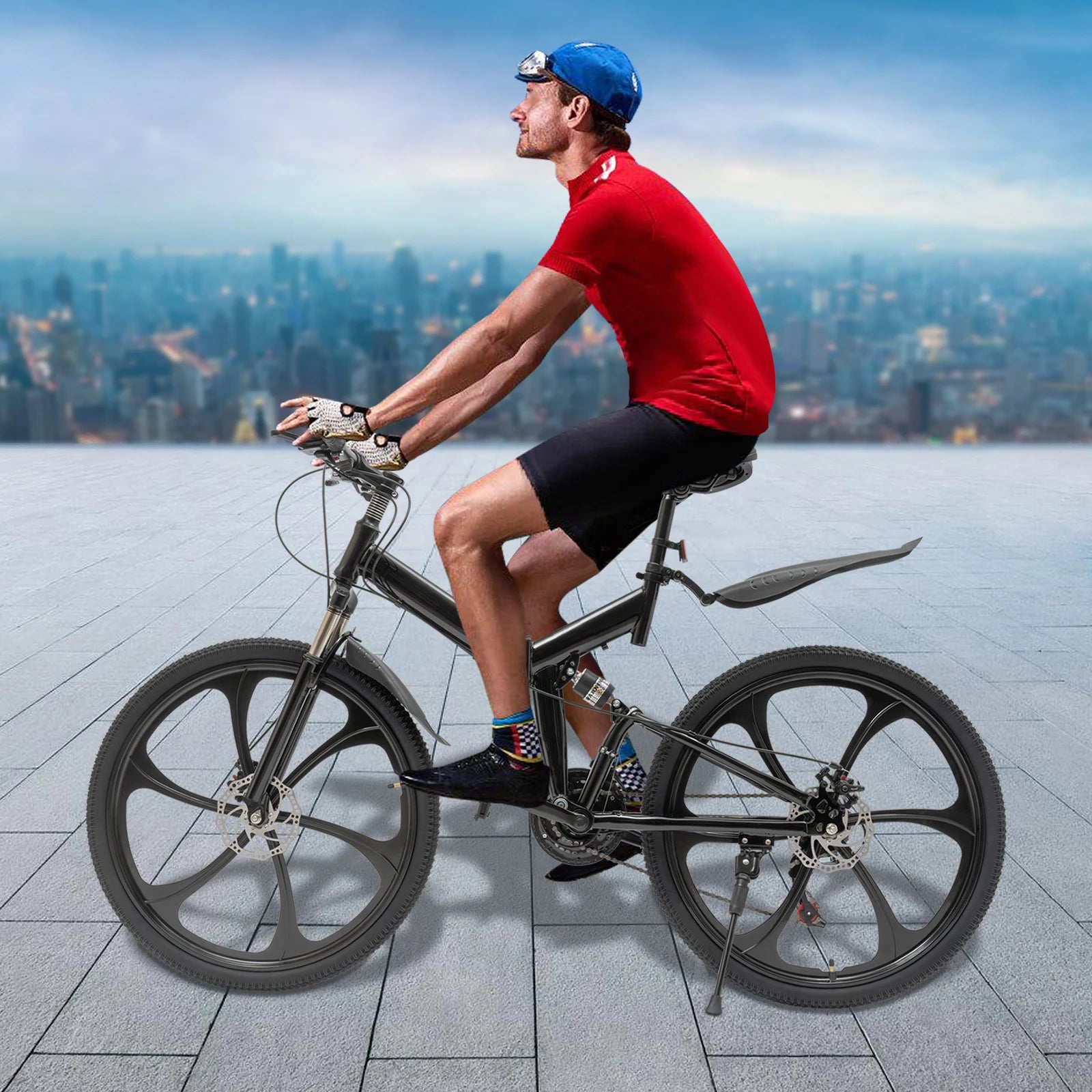 26inch Mountain Bike Folding Bicycle 21 Speed Carbon Steel Full Suspension Disc Brake Unisex MTB Black