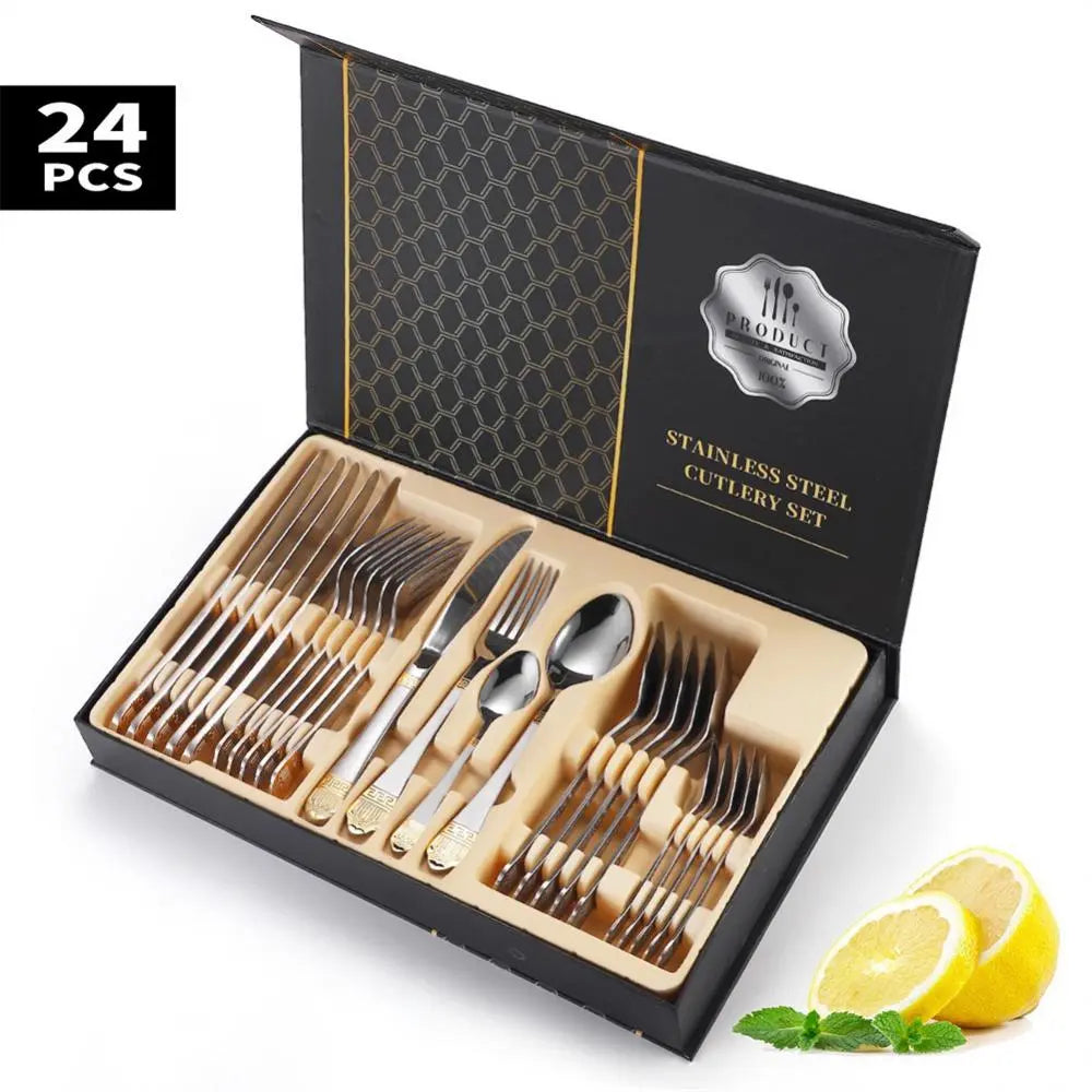 Dinnerware Tableware Set - 24pcs Dinnerware Set Stainless Steel Tableware Set Luxury Fork Spoon Knife Gold Silver Cutlery Gift Box Kitchen Accessories