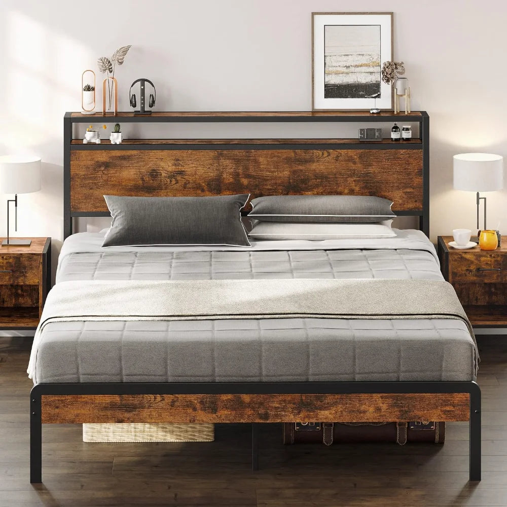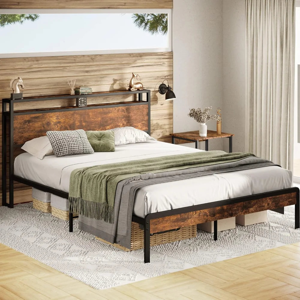 Full Bed Frame, Storage Headboard Queen/King