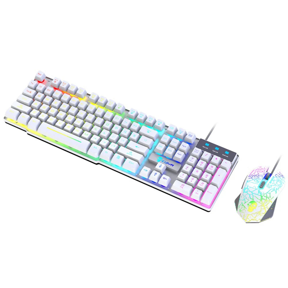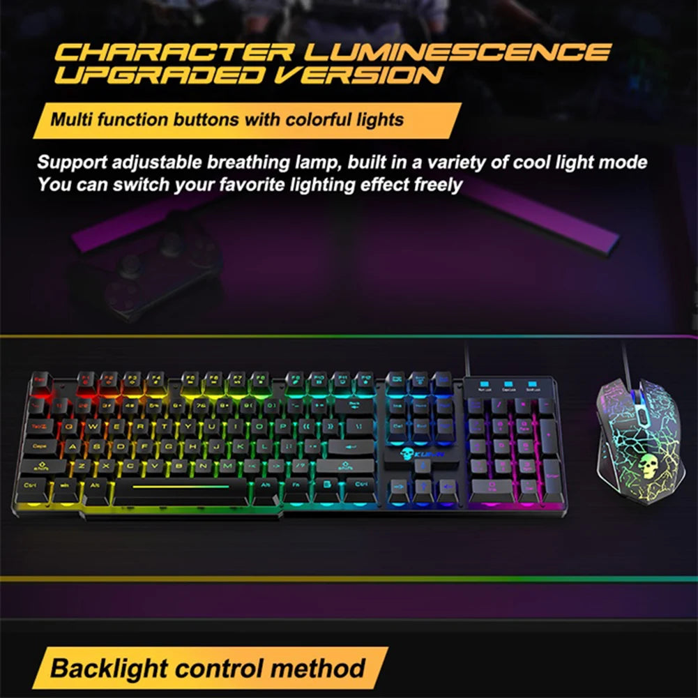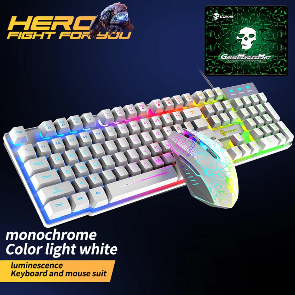 Gaming Keyboard Set Wired LED RBG Backlight 2400DPI 3-in-1 Mouse Mouse Pad Kits for Office Caring Computer Supplies
