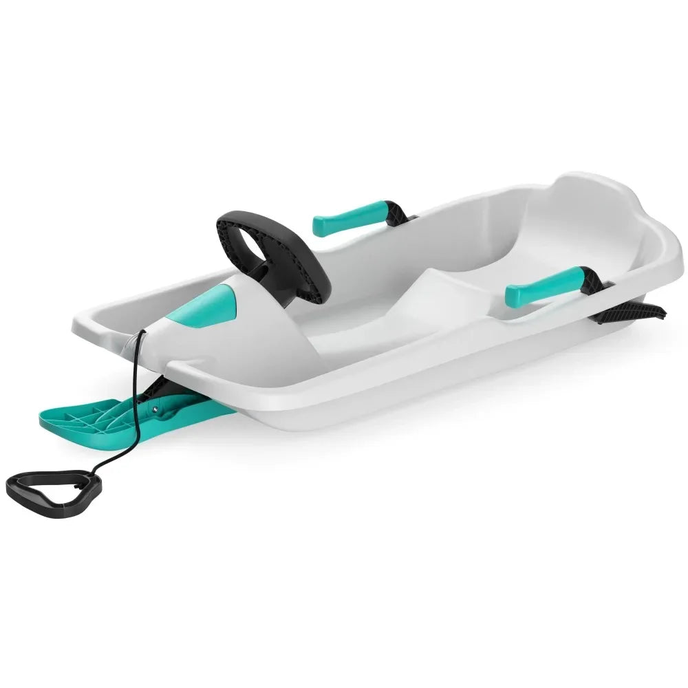 Kids Snow Sled with Heightened Backrest Steering Brakes