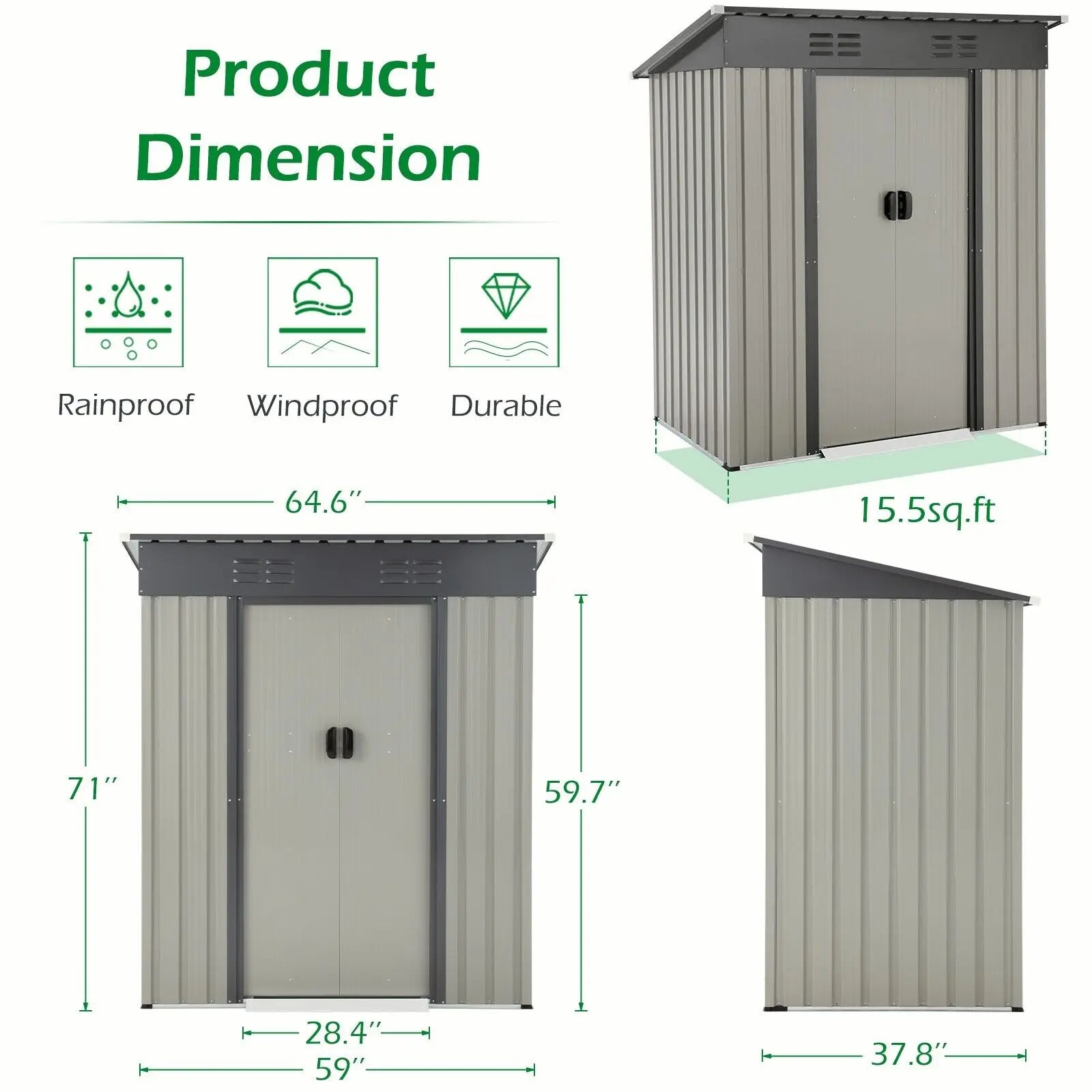 The gray storage shed can meet your multiple purposes, such as tool storage room, garbage room, pet room and outdoor rest room.